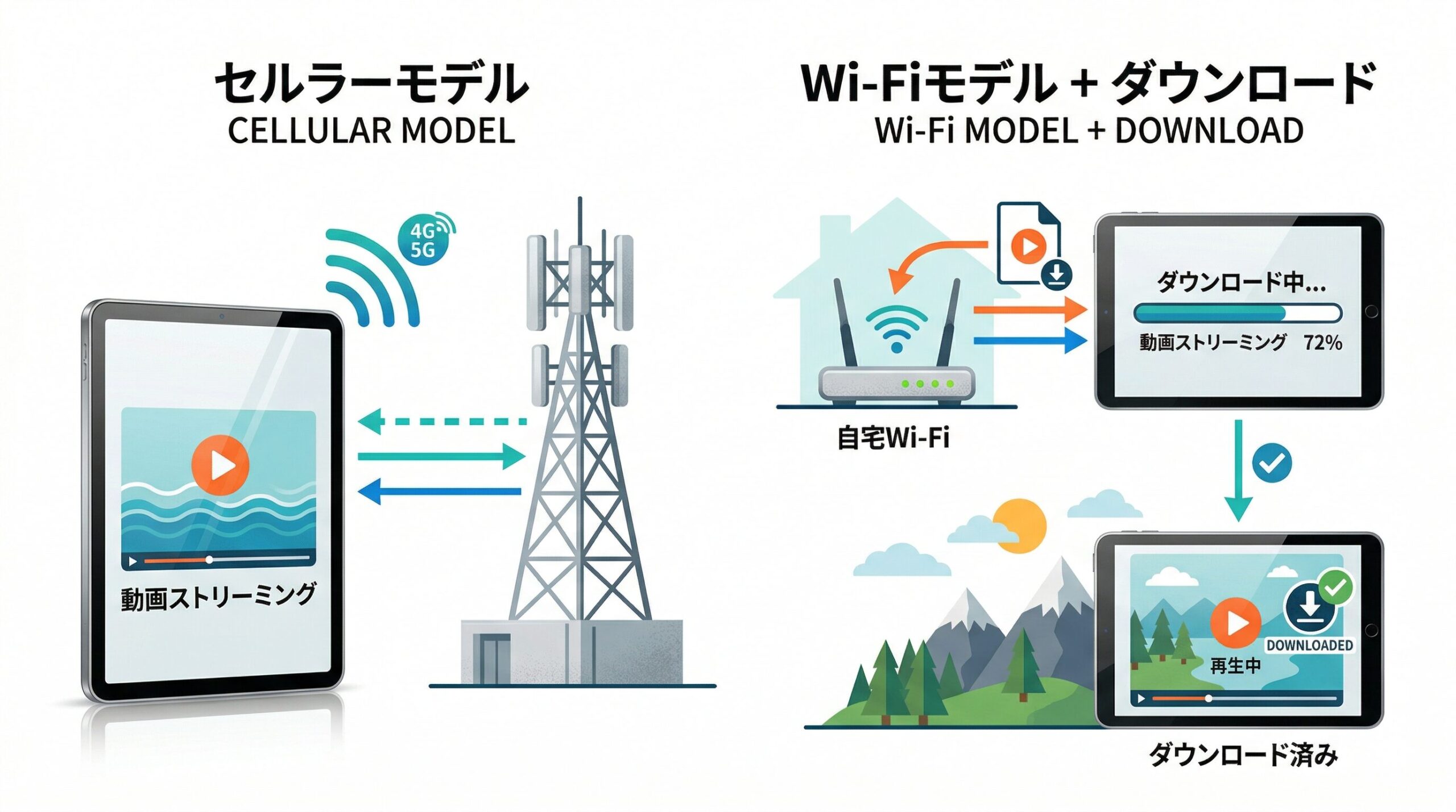 結論:移動中に観るなら「セルラーモデル」、自宅で貯めておくなら「大容量Wi-Fiモデル」