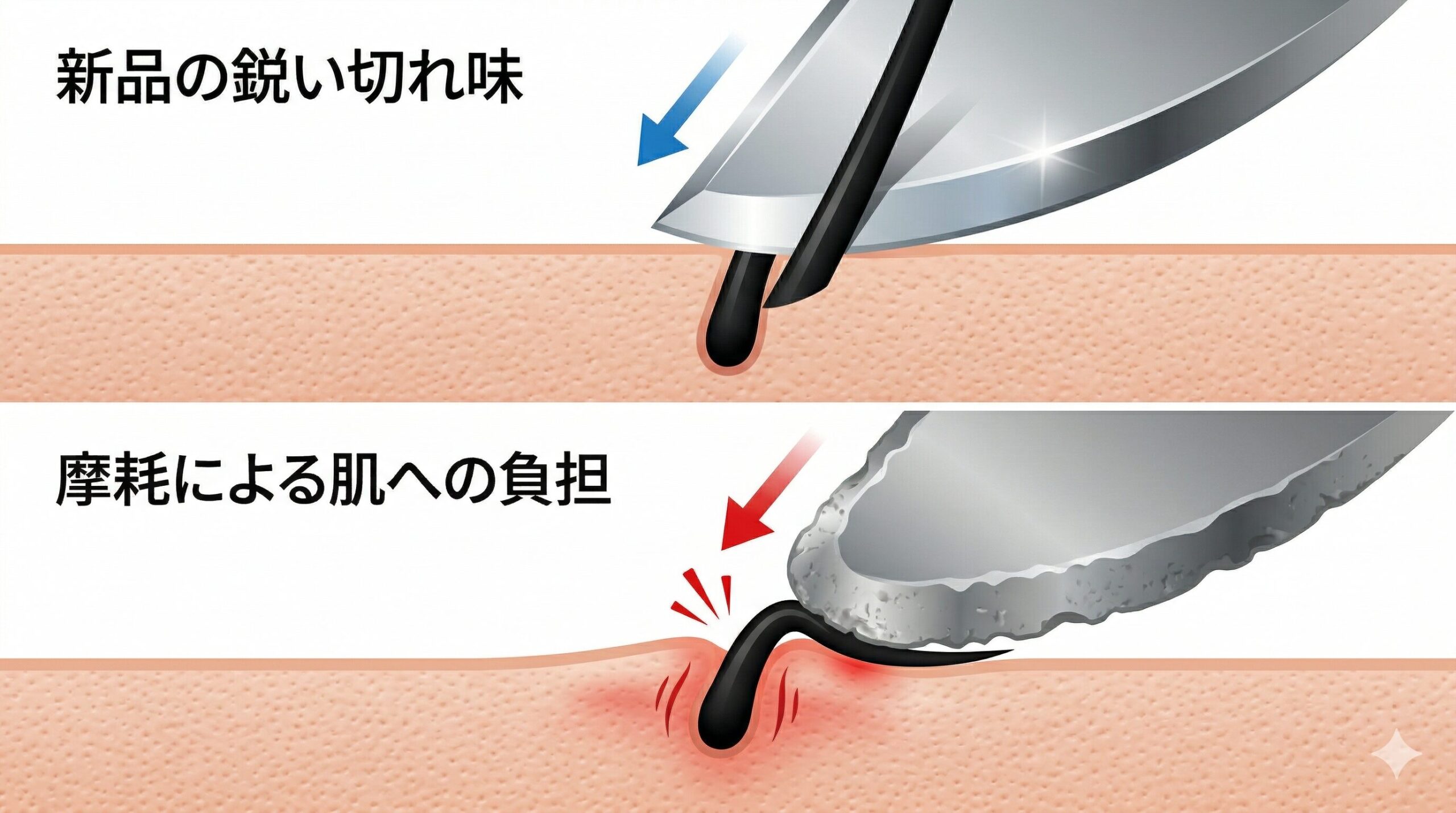 毎朝のルーティンにおいて、シェーバーの切れ味低下は明確なタイムロスと肌へのストレスを引き起こします。