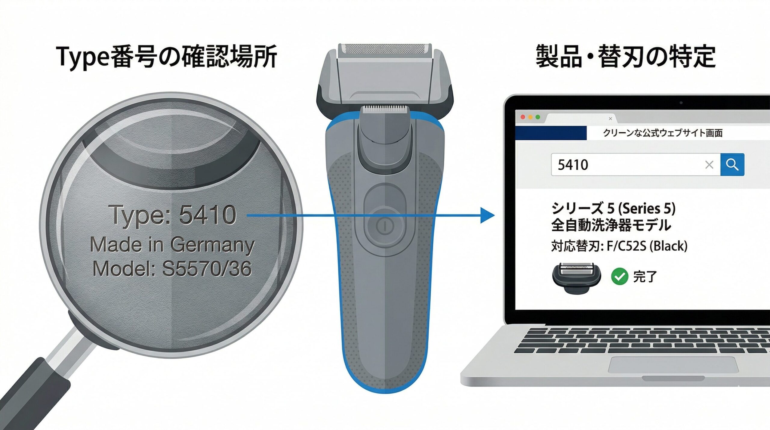 このType番号をブラウンの公式サポートページや互換性検索のシステムに入力することで、シリーズ9、シリーズ7、シリーズ5といった現行機から旧型機まで、正確な製品モデル名と適合する純正替刃を瞬時に導き出すことが可能です。