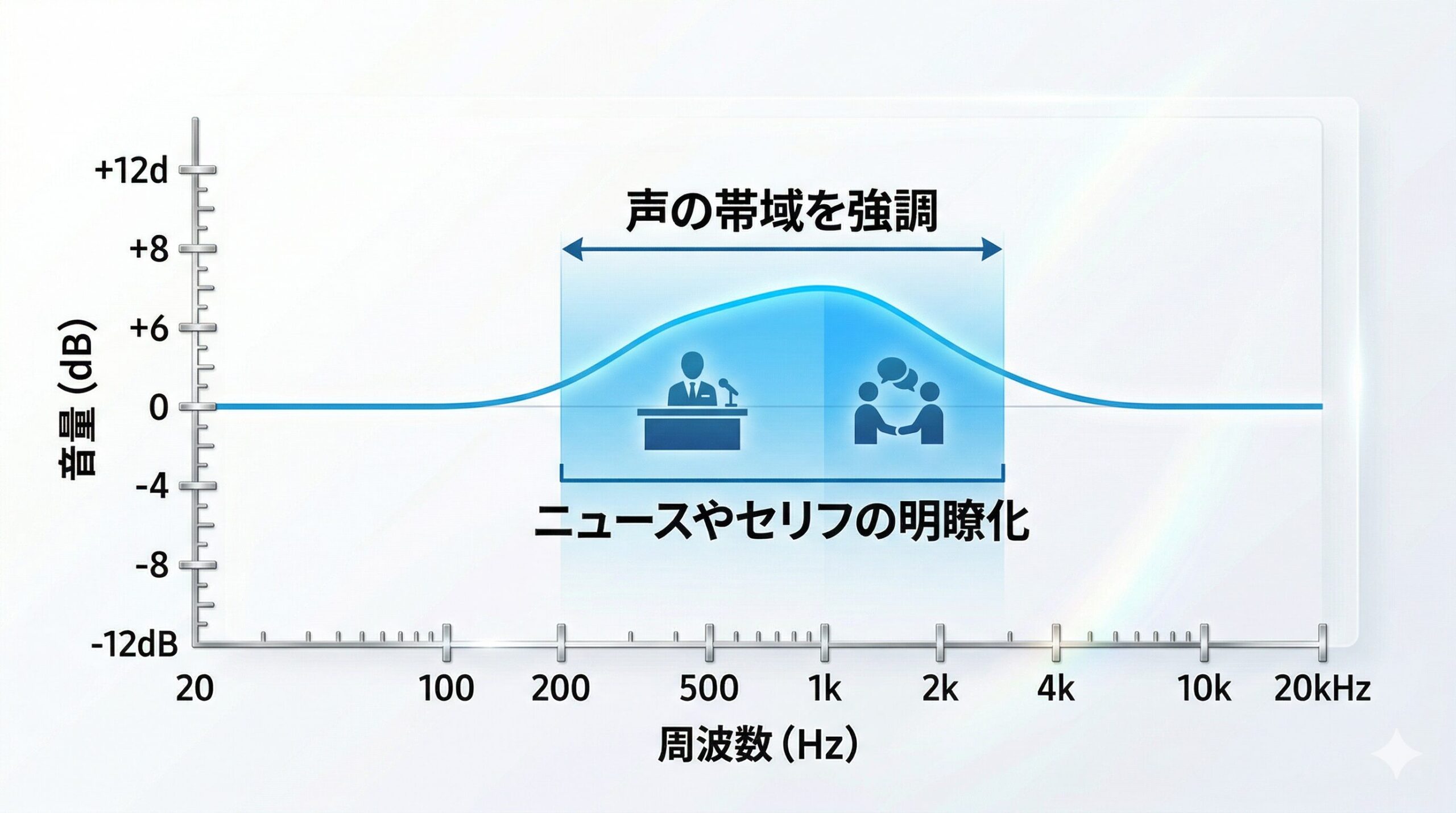 その結果、ニュースのアナウンサーの声がこもって聞こえたり、映画の爆発音が薄っぺらく感じたりといった、音響面での明確な劣化を引き起こしています。