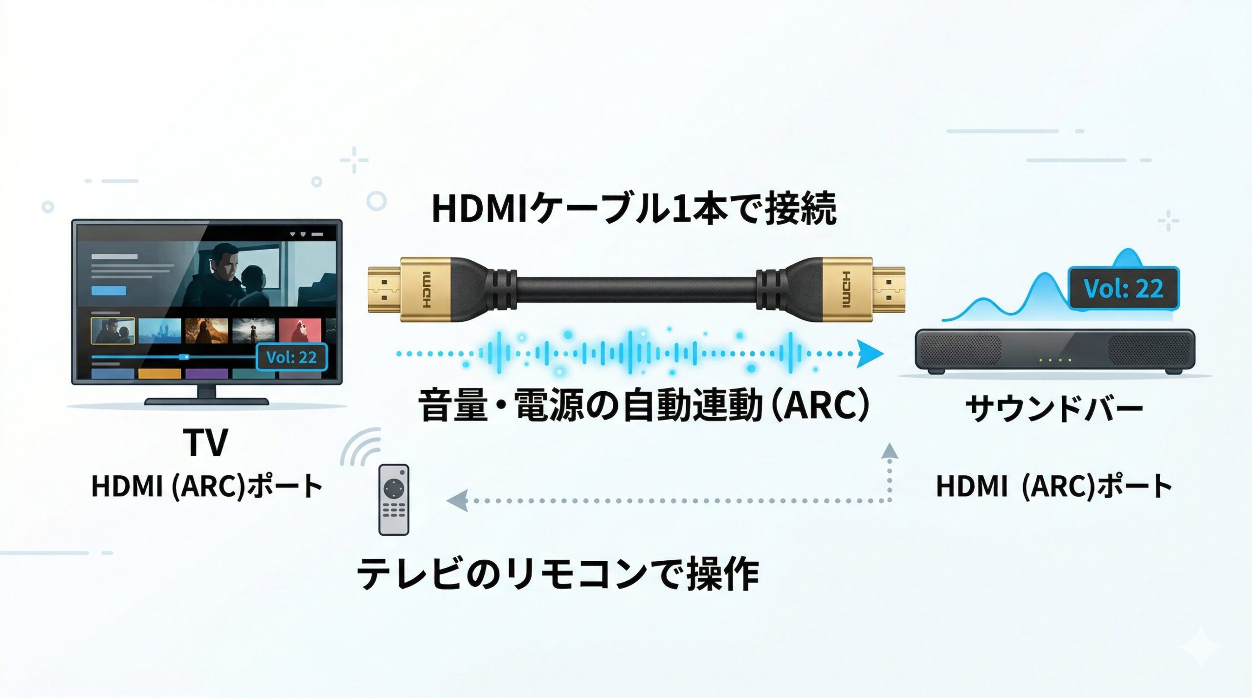• メリット:HDMI ARC対応による完全なリモコン連動と、人の声が際立つチューニング