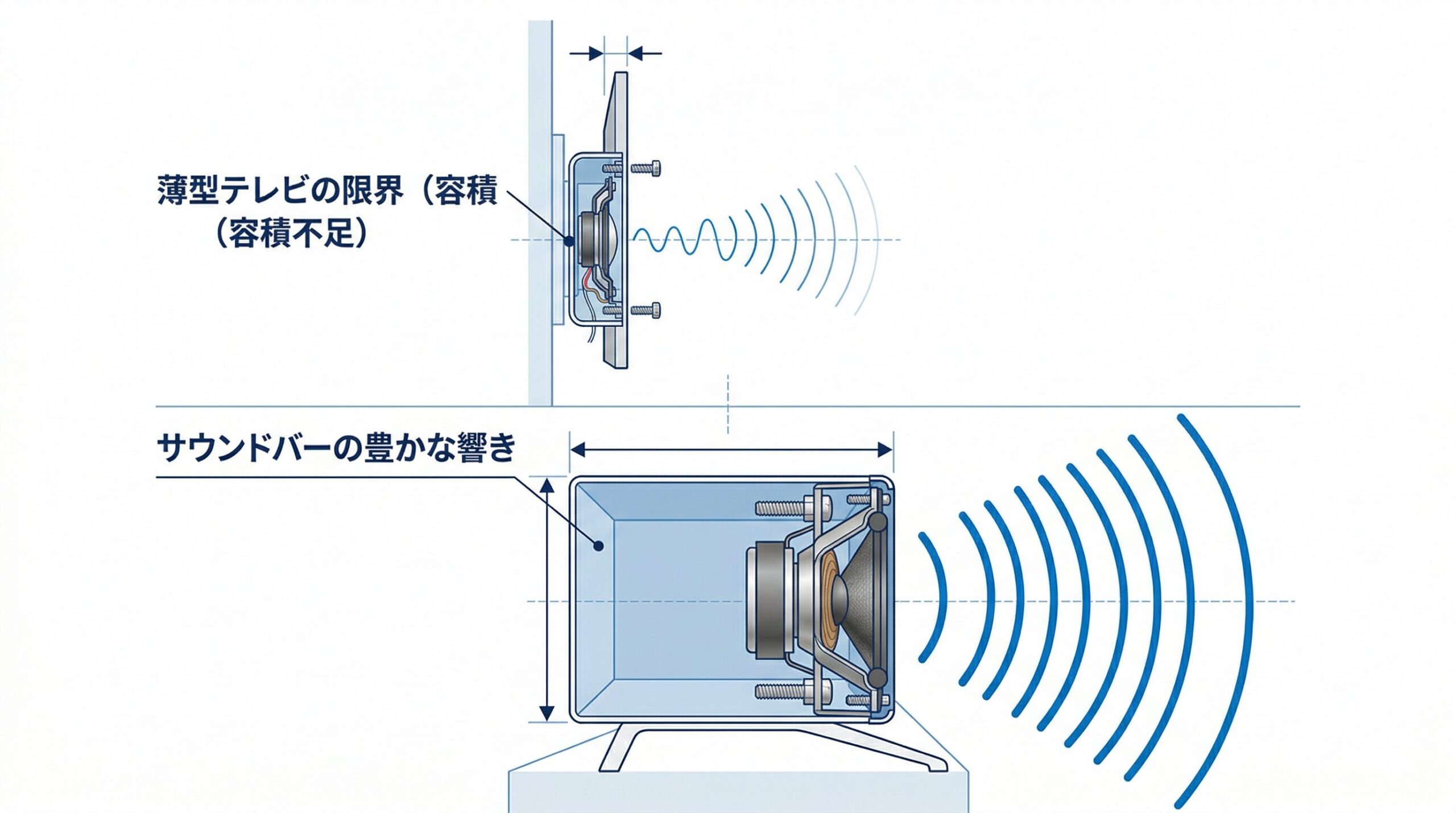 薄型化が極限まで進んだ現代のテレビは、美しい映像と引き換えに、物理的なスピーカーの容積を失いました。