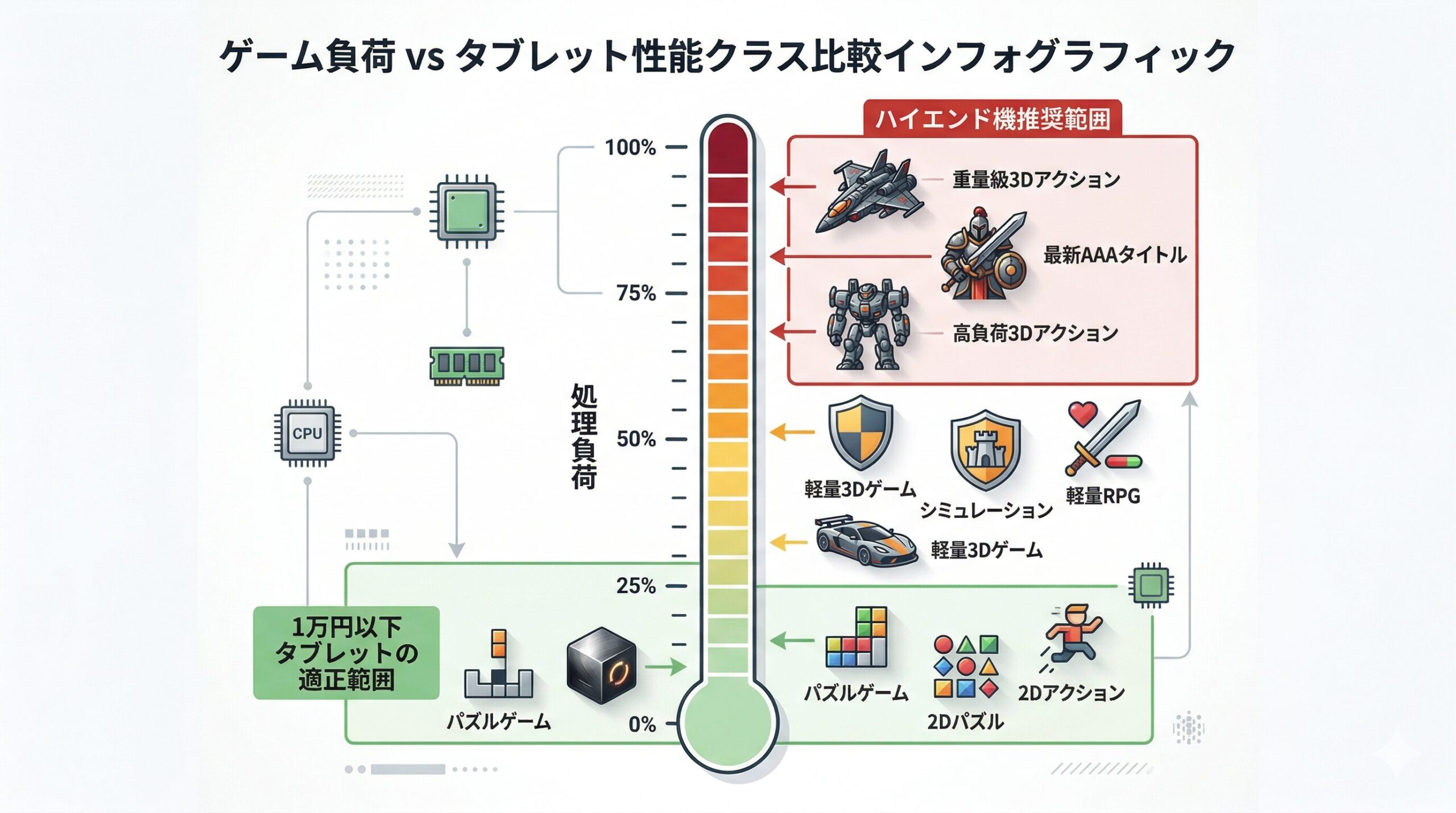 そこで浮上するのが「1万円以下のゲーム用タブレット」という選択肢ですが、この価格帯のデバイスに対して「まともに動くのか」「安物買いの銭失いになるのではないか」という強い懸念を抱くのは当然の心理です。カタログに並ぶ「オクタコア」や「大容量メモリ」といった華やかな字面に惑わされ、実際のプレイでカクつきや発熱に悩まされるケースは後を絶ちません。