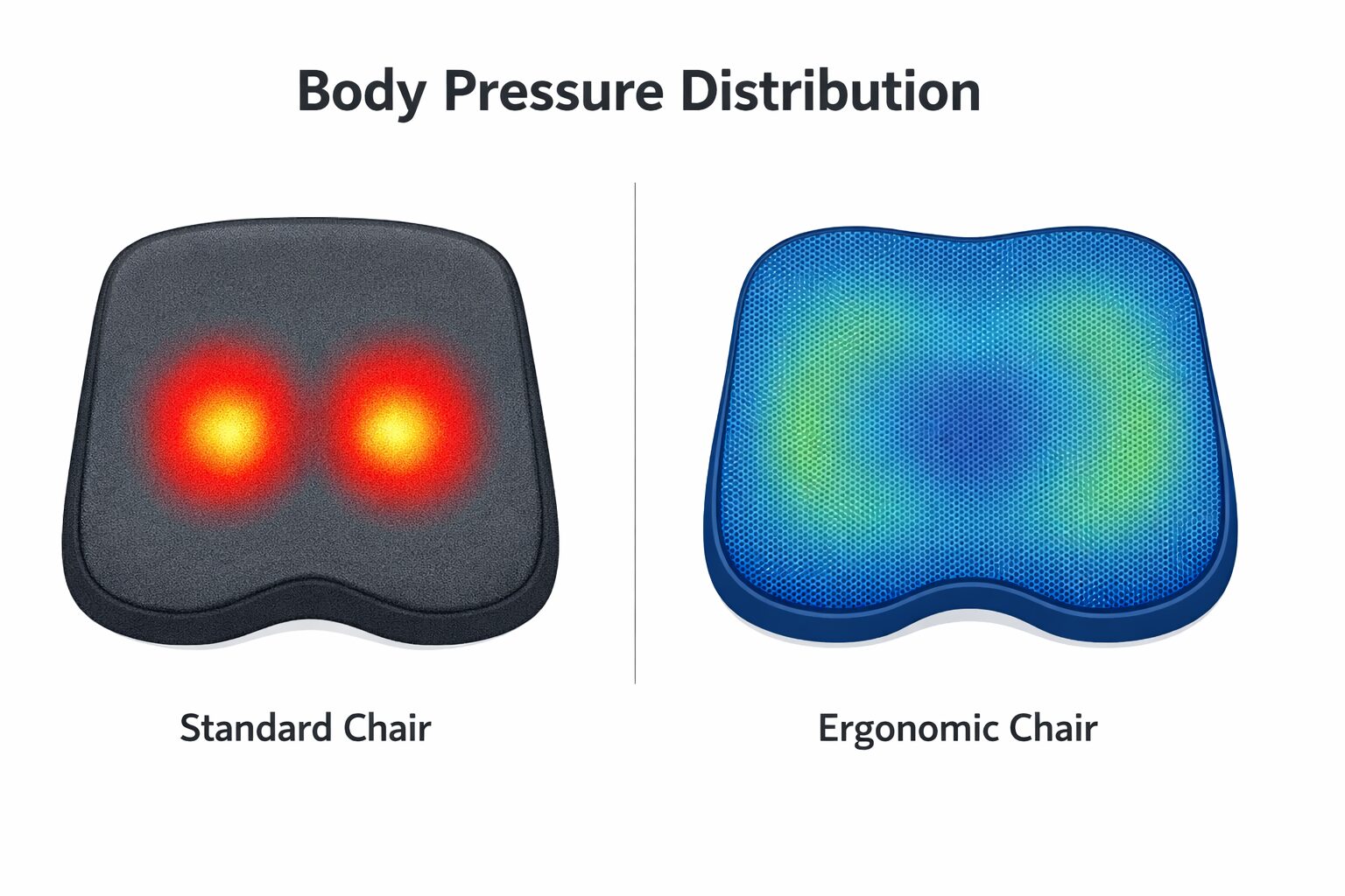 また、お尻や太ももへの圧迫を逃がす「体圧分散」の質も重要です。座面に高密度のウレタンや高品質なペリクル(メッシュ)を使用しているモデルを選ぶことで、下半身の血流悪化を防ぐことができます。
