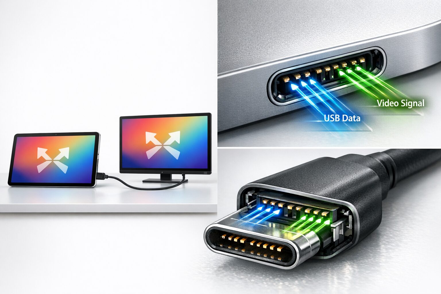 タブレット本体のUSB Type-C端子が「DisplayPort Alternate Mode(映像出力機能)」に対応していることを事前に確認し、HDMIへの変換アダプタを介して大型モニターへ直接ケーブルを繋ぐ手法が最も確実です。